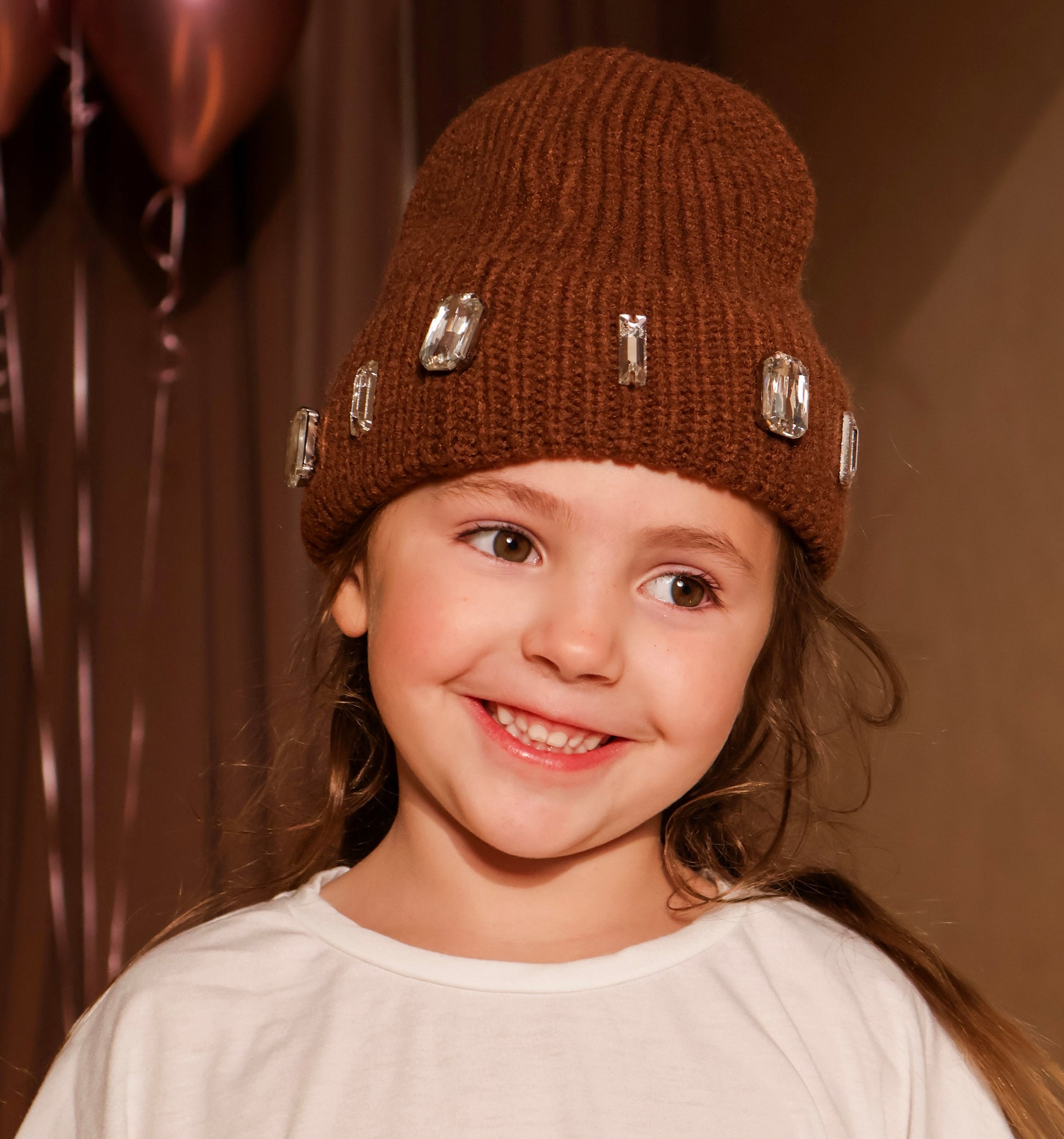 Bronze embroidered logo, crystal embellishments on reverse